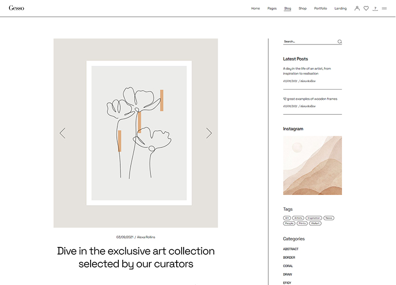 Showcase and sell your works of art with Gesso’s full WooCommerce plugin compatibility and a versatile selection of product lists and product singles