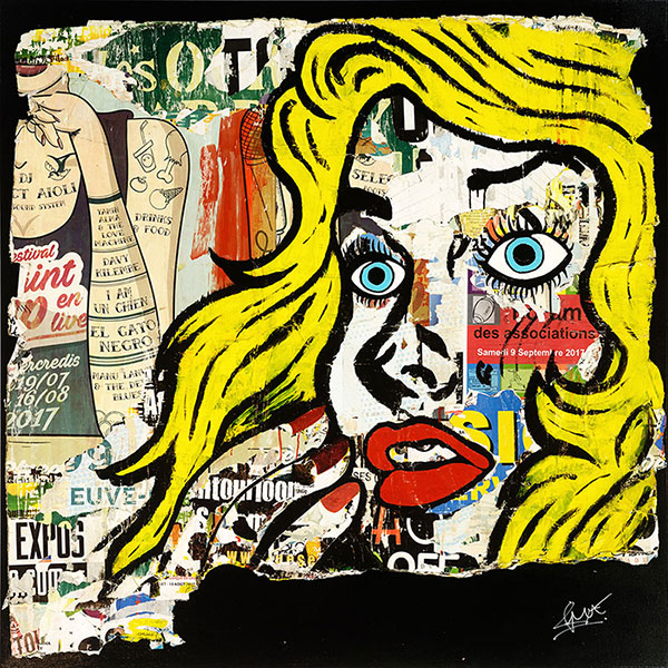 Cette série explore l’esthétique de la déchirure et la persistance du regard. À travers des portraits féminins inspirés du pop art de Lichtenstein, les affiches deviennent des surfaces vivantes où se mêlent peinture, papier et temps. Chaque fragment raconte une histoire incomplète, une émotion suspendue, un instant qui résiste à l’effacement. C’est une exposition à ciel ouvert, entre la fragilité du support et la force de l’image.